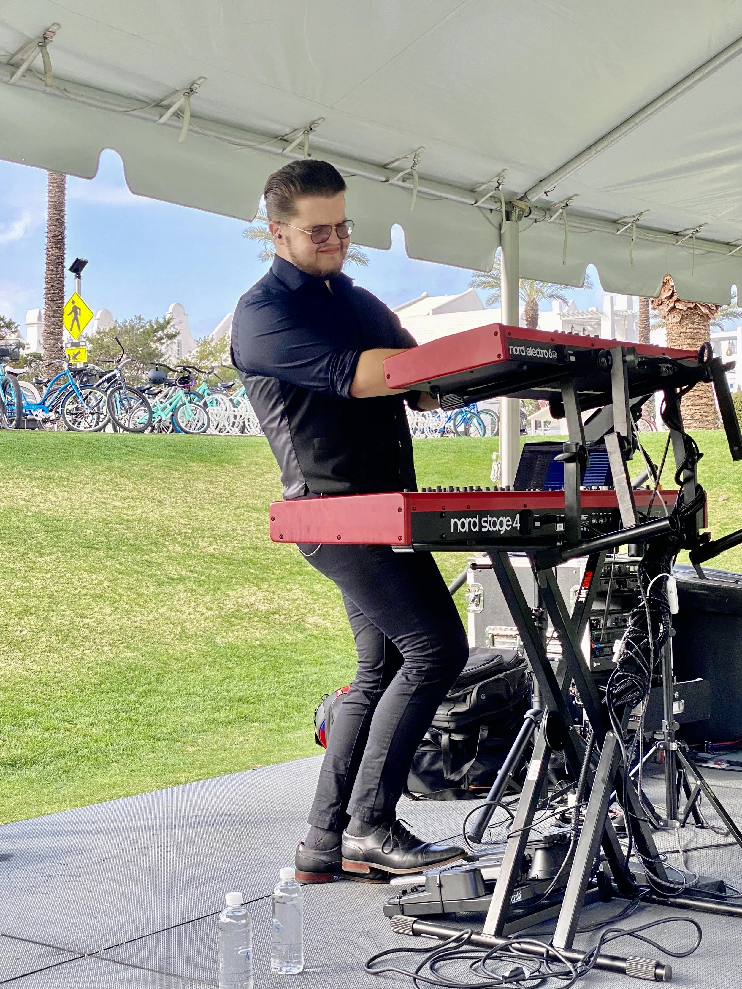 Harrison is a dynamic keyboardist, vocalist, and educator whose career bridges live performance and teaching across the Atlanta music scene. With a musical journey that began at the age of four, Harrison was performing professionally by sixteen—cutting his teeth in bar bands, church groups, corporate ensembles, duos, and as a solo piano-vocal act. His early immersion in a wide range of genres helped shape the versatile, expressive style that defines his playing today.